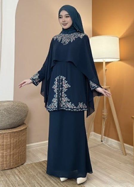 [PRE ORDER] Hayla Kurung (Navy Blue) with Matching Shawl