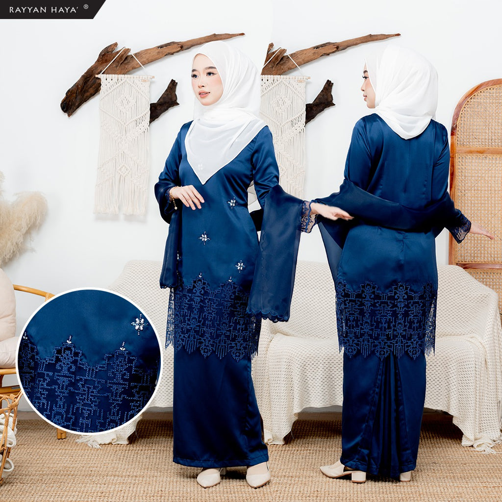 Laila Sari Kurung 2.0 (Navy Blue) with Matching Organza Shawl