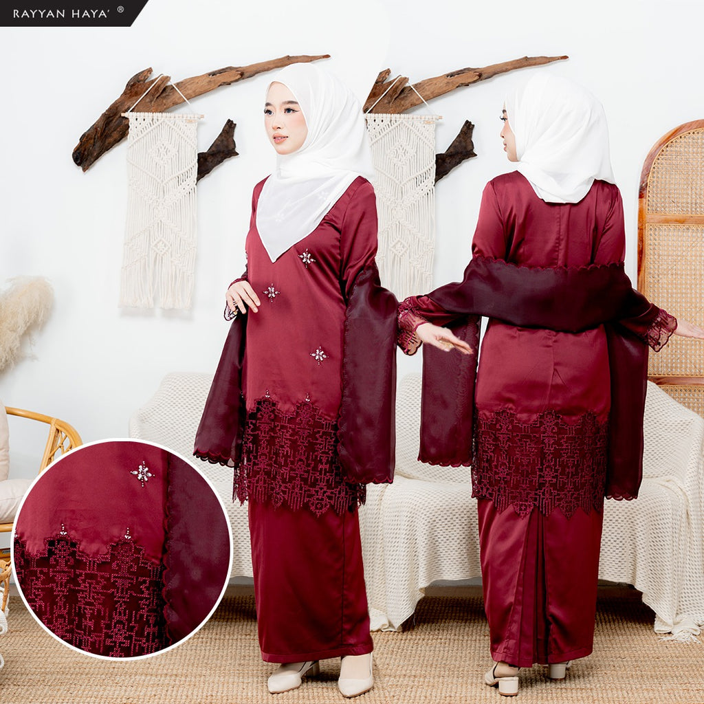 Laila Sari Kurung 2.0 (Maroon) with Matching Organza Shawl