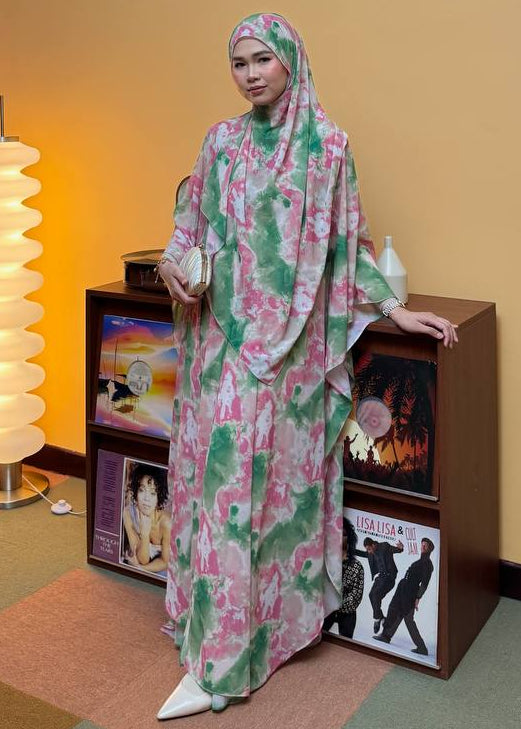 [PRE ORDER] Raysha Outerwear Abaya 3.0 with Matching Printed Shawl (Strawberry Matcha)