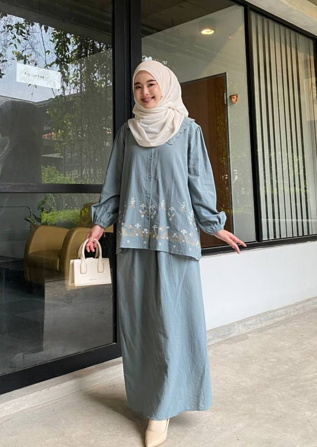 Rania Skirt Set (Dusty Blue)